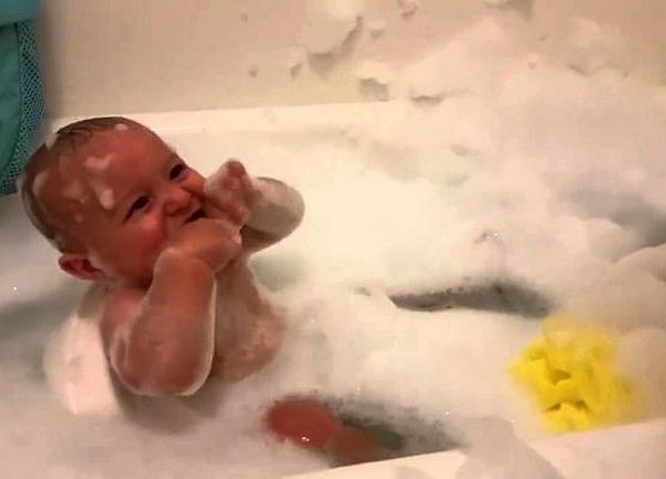 Αυτό το μωράκι φαίνεται να απολαμβάνει το μπάνιο του.  Ακόμα περισσότερο δε,  όταν ο μπαμπάς του παίζει με τις σαπουνόφουσκες.   Βάλτε δυνατά τον ήχο και απλά… απολαύστε το ξεκαρδιστικό του γέλιο!