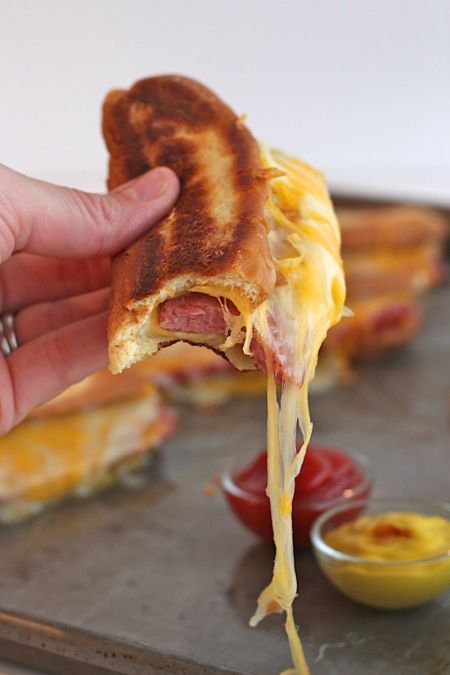 Υλικά (για τέσσερα άτομα)  1 μεγάλη μπαγκέτα κομμένη στα 4 (ή δύο μικρές στα 2), ή τέσσερα ψωμάκια για hot dog 4 λουκάνικα Φρανκφούρτης μεγάλα 300γραμμάρια τυρί τσένταρ τριμμένο Λίγο βούτυρο Κέτσαπ μουστάρδα (προαιρετικά) Εκτέλεση Σε μια λαμαρίνα στρώνουμε αντικολητικό χαρτί, χαράσουμε τα λουκάνικα και τα ψήνουμε στους 200°C, μέχρι να πάρουν χρώμα. Τα βγάζουμε από το φούρνο. Στην ίδια λαμαρίνα τοποθετούμε τα ψωμάκια ανοιχτά αφού τα έχουμε βουτυρώσει για 5 λεπτά μέχρι να χρυσίσουν. Μόλις ψηθούν τα ψωμάκια μας τα γεμίζουμε με τυρί τσένταρ, τοποθετούμε στη μέση τα λουκάνικα και τα αφήνουμε άλλα 10 λεπτά μέχρι να λιώσει καλά το τσένταρ.   Αν θέλετε τα σερβίρετε τα λουκάνικα με κέτσαπ και μουστάρδα.