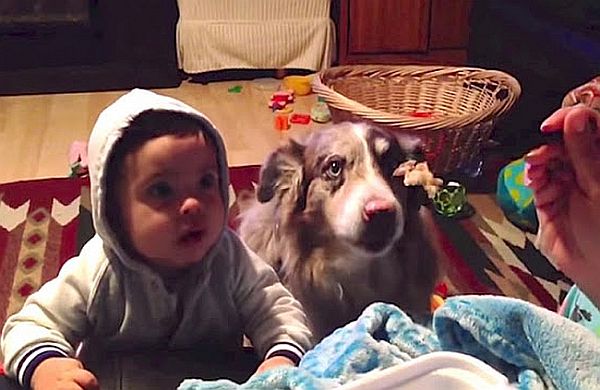 Οι γονείς του μικρού αυτού μπόμπιρα προσπαθούν να τον ενθαρρύνουν να πει τη λέξη «μαμά», δελεάζοντας τον με μια πιρουνιά φαγητό. Ο σκύλος της οικογένειας δίπλα του αποφασίζει να διεκδικήσει κι αυτός το φαγητό και να το κερδίσει με την αξία του. Κάτι η λαιμαργία, κάτι η αποφασιστικότητα….
