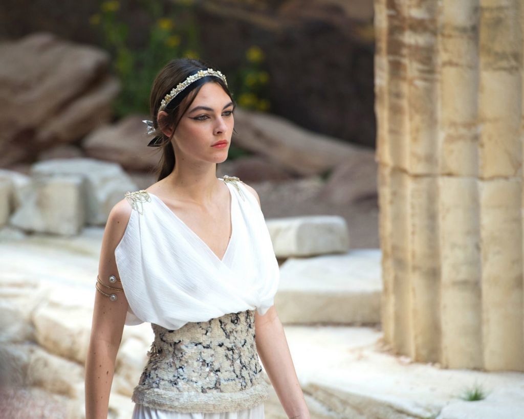 H νέα, εντυπωσιακή συλλογή του οίκου Chanel, Cruise 2018,“Ο σύγχρονος χαρακτήρας της αρχαιότητας” (The Modernity of Antiquity), είναι εμπνευσμένη από την Αρχαία Ελλάδα. Αυτή τη φορά ο Καρλ Λάγκερφελντ αποφάσισε η κολεξιόν Cruise, να γίνει στο Παρίσι σε αντίθεση με τις προηγούμενες επιδείξεις των συλλογών του οίκου που έγιναν σε Κούβα, Ντουμπάι και Ρώμη. Στο The Grand Palais, δημιουργήθηκε ένα σκηνικό ειδικά για την περίσταση, που θύμιζε έντονα τον Παρθενώνα με κίονες Ιωνικού ρυθμού. Ένα ελαιόδεντρο, θάλασσα και ηλιοβασίλεμα υπογράμμιζαν ακόμη περισσότερο το ελληνικό στοιχείο. Σχέδια one shoulder, χρυσά κοσμήματα, εντυπωσιακά headpieces, σανδάλια μέχρι το γόνατο και υφάσματα με πτυχώσεις σε χρώματα εκτός από το κυρίαρχο λευκό, πορφύρα, μπλε, παστέλ τόνους και μαύρο. «Η δική μου Ελλάδα», είπε ο σχεδιαστής, «είναι μία ιδέα Θεωρώ την Ελλάδα ως την πηγή της ομορφιάς και του πολιτισμού, στην οποία υπήρχε θαυμάσια ελευθερία κινήσεων που όμως έχει εξαφανιστεί».