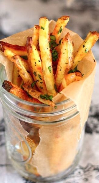 Υλικά 4 μεγάλες πατάτες, καθαρισμένες και κομμένες (όχι πολύ λεπτές) 1 κουταλιά σούπας ελαιόλαδο 1 κουταλιά σούπας χοντρό αλάτι Προαιρετικά ψιλοκομμένο φρέσκο βασιλικό ή φρέσκο μαϊντανό.