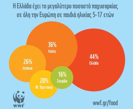 Ένα στα δύο Ελληνόπουλα ηλικίας 5 – 17 ετών πάσχει από παχυσαρκία, με την Ελλάδα να κατέχει θλιβερή πρωτιά σε ολόκληρη την Ευρωπαϊκή Ένωση. Την ίδια στιγμή η κατανάλωση τροφίμων στην Ευρώπη αντιπροσωπεύει το 20 – 30% του συνόλου του αποτυπώματος των νοικοκυριών στον πλανήτη, ενώ το 1/3 των τροφίμων που παράγονται σε όλο τον κόσμο πετιέται στα σκουπίδια. Όσο κι αν φαίνεται περίεργο, η διατροφή μας – αν δεν είναι σωστή – κοστίζει στην υγεία μας αλλά και τον πλανήτη! Για αυτόν τον λόγο, το WWF Ελλάς εγκαινίασε σήμερα τη νέα πανελλήνια εκστρατεία του για τη βιώσιμη διατροφή: «Υγιή παιδιά, υγιής πλανήτης».
