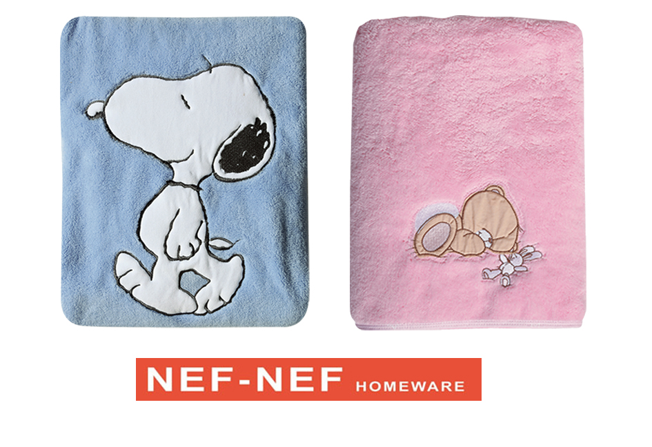 Ήρωες των παραμυθιών και του κινηματογράφου ταξιδεύουν σε κόσμους συναρπαστικούς και αγκαλιάζουν τον κόσμο των παιδιών, προσφέροντας χαρά και αφορμή για παιχνίδι. Απαλλαγμένα από επιβλαβείς ουσίες, οικολογικά και φιλικά στο ανθρώπινο δέρμα, τα λευκά είδη της Nef – Nef Homeware τυλίγουν τρυφερά τα παιδικά όνειρά.