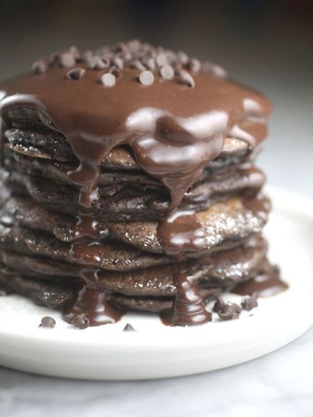 Λαχταριστές τηγανίτες σοκολάτας με σάλτσα σοκολάτας. Μια φανταστική συνταγή για όλες τις ώρες. Γιατί πάντα είναι η κατάλληλη ώρα για σοκολάτα. Υλικά Για τις τηγανίτες 1 1/3 φλιτζάνι αλεύρι 3 κουταλιές της σούπας κακάο σε σκόνη 2 κουταλάκια του γλυκού baking powder ¼ φλιτζάνι ζάχαρη 3 κουταλιές της σούπας βούτυρο λιωμένο 1 φλιτζάνι κουβερτούρα λιωμένη 1 κουταλάκι του γλυκού βανίλια 1¼ φλιτζάνι γάλα 1 αυγό Για τη σάλτσα σοκολάτας ¾ φλιτζανιού κρέμα γάλακτος 1 κουταλάκι του γλυκού βούτυρο 1 φλιτζάνι κουβερτούρα λιωμένη Εκτέλεση Σε ένα μέτριο μπολ χτυπάμε το αλεύρι, τη ζάχαρη, το baking powder, το αλάτι το κακάο και τη βανίλια και ανακατεύουμε. Στη συνέχεια προσθέτουμε τα υπόλοιπα υλικά ένα προς ένα ανακατεύοντας συνεχώς. Σε ένα τηγάνι απλώνουμε το βούτυρο μέχρι να κάψει και προσθέτουμε κάθε φορά 1/4 φλιτζάνι από το μείγμα στο τηγάνι για να έχουν οι τηγανίτες το ίδιο μέγεθος. Μόλις εμφανιστούν φυσαλίδες τα αναποδογυρίζουμε και τηγανίζουμε για άλλο ένα λεπτό. Για τη σάλτσα σοκολάτας, ζεσταίνουμε το βούτυρο και το γάλα σε μια μικρή κατσαρόλα ενώ στη συνέχεια προσθέτουμε στη σοκολάτα. Ανακατεύουμε μέχρι να γίνει ομοιογενές το μείγμα και στη συνέχεια το περιχύνουμε όσο είναι ακόμα ζεστό πάνω από τις τηγανίτες.