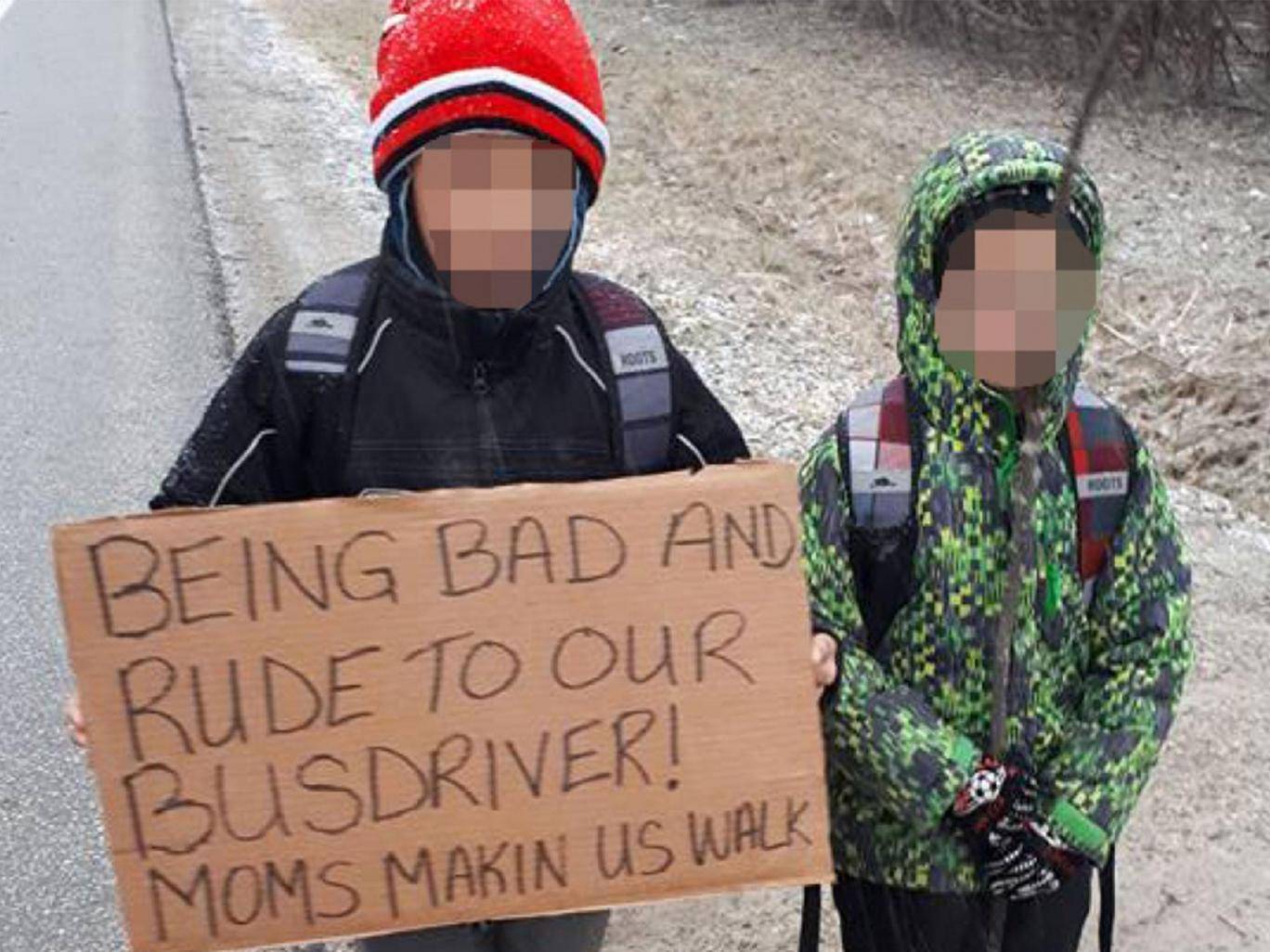 Δείτε την τιμωρία μιας μαμάς προς τα παιδιά της που έγινε…viral Μια μαμά από το Οντάριο του Καναδά, υποχρέωσε τα παιδιά της να περπατήσουν σχεδόν 7 χιλιόμετρα μέσα στο χιόνι, προκειμένου να τα τιμωρήσει επειδή μίλησαν με αγένεια στον οδηγό του σχολικού λεωφορείου. Και δεν ήταν μόνον αυτό. Η ευρηματική μαμά-τιμωρός τα ανάγκασε να κρατούν μια πινακίδα από χαρτόνι που έγραφε: «Ήμασταν κακοί και αγενείς με τον οδηγό του λεωφορείου και η μαμά μας έβαλε να περπατήσουμε» Η δημιουργική αυτή τιμωρία της έγινε viral στο Facebook και σε ελάχιστη ώρα μοιράστηκαν τη φωτογραφία των τιμωρημένων παιδιών χιλιάδες χρήστες. Η ίδια η μαμά όταν ρωτήθηκε για την πρωτότυπη τιμωρία της απάντησε: «Έλαβα ένα τηλεφώνημα από το σχολείο όπου με ενημέρωναν για την κακή συμπεριφορά των αγοριών μου. Έτσι, αποφάσισα σήμερα το πρωί, να κάνουμε μια βόλτα 6-7 χιλιομέτρων προκειμένου να καταλάβουν πόσο πολύ θα τους έλειπε το λεωφορείο». Η φωτογραφία των παιδιών που περπατούν στο σχολείο μοιράστηκε πάνω από 38.000 φορές στο Facebook