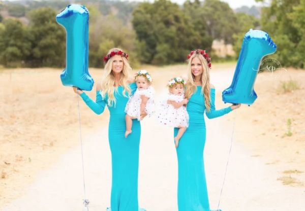 Οι δίδυμες αδερφές ΚόρεΪ και Κέϊτι ήταν κάτι παραπάνω από χαρούμενες όταν έμειναν (συμπτωματικά) έγκυες το ίδιο περίπου χρονικό διάστημα. Το ότι γέννησαν όμως, όχι μόνο την ίδια ημέρα, αλλά με μόλις 15 λεπτά διαφορά, ήταν για τις ίδιες αλλά και τους οικείους τους, μια φανταστική έκπληξη. Λίγο πριν φέρουν στον κόσμο τις κόρες τους, Ίντι και Ράιατ, οι ιδιαίτερα δεμένες αδερφές αποφάσισαν να βγάλουν αναμνηστικές φωτογραφίες από την εγκυμοσύνη τους, φορώντας μάλιστα τα ίδια φορέματα. Ένα χρόνο μετά, σκέφτηκαν να επαναλάβουν τη φωτογράφηση, κρατώντας αυτή τη φορά στην αγκαλιά τους τις δύο τους κορούλες, που είναι κάτι σαν δίδυμες ξαδερφούλες!