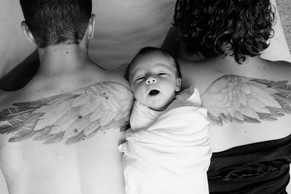 Δείτε το υπέροχο τατουάζ ενός ζευγαριού για το πρόωρα χαμένο μωρό τους, που έγινε viral O Στίβεν και η Γκλόρια Κίμελ, ήταν ένα ευτυχισμένο ζευγάρι που το 2015 η ευτυχία τους ολοκληρώθηκε με τη γέννηση του γιου τους Ισαάκ. Έξι όμως μόλις μήνες μετά τη γέννηση του, το μωρό διαγνώστηκε με μια σπάνια ασθένεια που ξεκίνησε με σπονδυλική μυϊκή ατροφία. Οι γιατροί τους είπαν ότι η ασθένεια του ήταν μη θεραπεύσιμη, οπότε και τον πήραν σπίτι και τον αγάπησαν σαν τίποτε στον κόσμο. Το μωρό τελικά πέθανε 14 μήνες μετά. «Η θλίψη που έρχεται με την απώλεια ενός παιδιού είναι αδιανόητη, λέει η άτυχη μαμά. «Δεν ξέρω πώς φτάσαμε στο σπίτι από το νοσοκομείο χωρίς αυτόν, αλλά το κάναμε. Δεν ξέρω πώς μπόρεσα να κηδέψω το παιδί μου, χωρίς να σπάσει η καρδιά μου, αλλά το έκανα ». Μόλις μια εβδομάδα μετά την κηδεία του Ισαάκ, ο Στίβεν και η Γκλόρια έκαναν ένα τατουάζ με φτερό στην πλάτη τους για να θυμούνται πάντα το μικρό τους άγγελο. Δύο χρόνια μετά το θάνατο του Ισαάκ, το ζευγάρι γέννησε ένα υγιές κοριτσάκι την κορούλα τους Κλερ. Αυτή την εβδομάδα, η αδελφή της Γκλόρια ανέβασε στα μέσα κοινωνικής δικτύωσης μια υπέροχη φωτογραφία του ζευγαριού και του νεογέννητου μωρού τους. Ήταν στενά τοποθετημένη ανάμεσα στα φτερά του αδελφού της, Ισαάκ. Η φωτογραφία ήταν ένας φόρος τιμής στο μικρούλη Ισαάκ που έφυγε τόσο νωρίς από τη ζωή και όπως ήταν φυσικό έγινε viral. Η Γκλόρια ομολογεί: «Ακόμη και τώρα, δύο χρόνια μετά την αποχώρηση του μωρού μου, προσπαθώ να βρίσκω νέους τρόπους για να αντιμετωπίσω τη θλίψη μου». Η φωτογραφία αυτή με το τατουάζ, αποτελεί ένα συνδυασμό αποχαιρετισμού και ελπίδας για το ζευγάρι οι οποίοι σκοπεύουν να κρατήσουν ζωντανή τη μνήμη του Ισαάκ για πάντα στην καρδιά της μικρής τους οικογένειας.