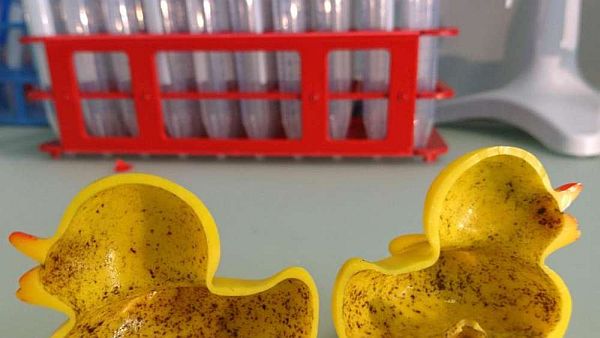 Διεθνής επιστημονική ομάδα προτείνει την απαγόρευση των παιχνιδιών που τα παιδιά συνηθίζουν να βάζουν στη μπανιέρα, όπως π.χ το παπάκι μπάνιου. Και αυτό διότι, όπως υποστηρίζουν οι ερευνητές από τις ΗΠΑ και την Ελβετία, τα συγκεκριμένα παιχνίδια συνδυαστικά με τις συνθήκες που διαμορφώνονται από το ζεστό νερό στη μπανιέρα προάγουν την ανάπτυξη και εξάπλωση μυκήτων. «Βακτήρια και μύκητες εντοπίζονται στο εσωτερικό των εύκαμπτων αυτών παιχνδιών και το λιμνάζον νερό που παγιδεύεται εντός τους μπορεί να απελευθερωθεί καθώς το παιδί πιέζει το παιχνίδι», αναφέρεται σε ανακοίνωση της ελβετικής κυβέρνησης. Σύμφωνα με άρθρο του επιστημονικού εντύπου npj Biofilms and Microbiomes, οι ερευνητές του Ελβετικού Ομοσπονδιακού Ινστιτούτου Επιστήμης και Τεχνολογίας Υδάτων (EAWAG), της Ελβετικής Ομοσπονδιακής Πολυτεχνικής Σχολής κια του Πανεπιστημίου του Ιλινόις παρατήρησαν ότι «η ποικιλόμορφη μικροβιακή ανάπτυξη προωθείται όχι μόνο από τα πλαστικά υλικά αλλά από τους ίδιους τους χρήστες» δηλαδή τα παιδιά την ώρα του μπάνιου. Οι επιστήμονες έκαναν μια σειρά πειραμάτων με παιχνίδια μπάνιου που είχαν πάρει από παιδιά και καινούργια που τα υπέβαλλαν στις ίδιες συνθήκες χρήσης με την πραγματικότητα. Σε διάστημα 11 εβδομάδων, τα εξέθεσαν τόσο σε καθαρό όσο και σε βρώμικο νερό από μπανιέρα, που περιέχει σαπούνι και σωματικά υγρά.