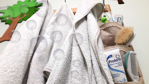 Έχω ξεχάσει τίποτα; Α ναι, τα φρεσκομυριστά (και θα σας πρότεινα ζεστά το χειμώνα!) καθαρά ρουχαλάκια μετά το μπάνιο που είναι το το κερασάκι στην τούρτα μετά από ένα όμορφο μπάνιο. Οι νέες μανούλες θα βρείτε στην Στην Proderm το