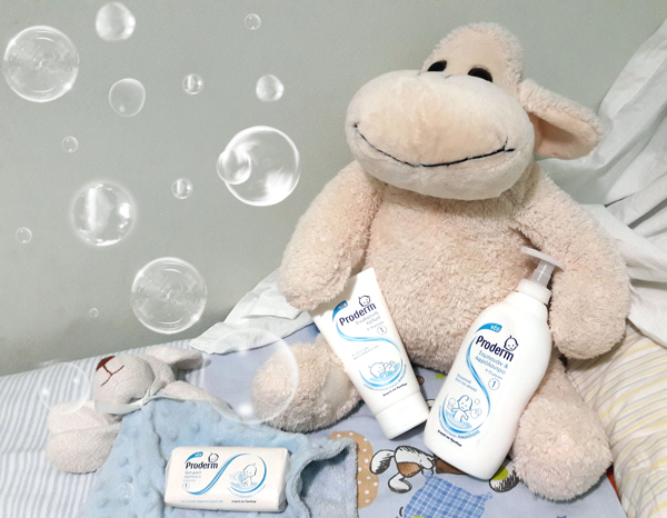 βρεφικό σαπούνι της ίδιας σειράς της Proderm που καθαρίζει υγιεινά το κεφαλάκι και το σώμα χωρίς να του δημιουργεί ερεθισμούς..