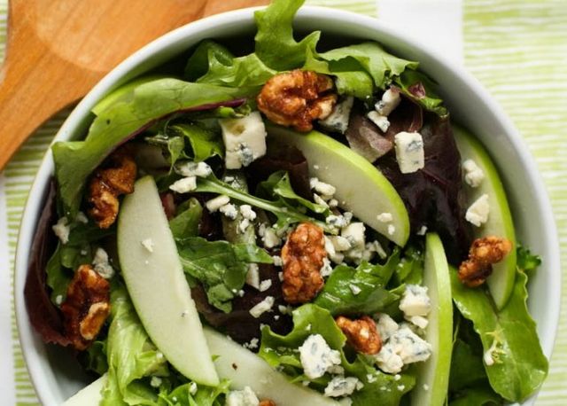 Χορταστική σαλάτα με μήλο, καρύδια και μπλε τυρί