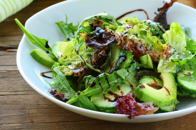 Υλικά 4 φύλλα μαρούλι, ψιλοκομμένα 6 ντοματίνια, κομμένα στα δύο 2 ραπανάκια, λεπτοκομμένα 2 κρεμμυδάκια, λεπτοκομμένα 50 γρ. αγγούρι, κομμένο σε μικρούς κύβους 25 γρ. φύλλα μαϊντανό, τεμαχισμένα 25 γρ. φύλλα μέντας, χοντροκομμένα 1 αβοκάντο, ψιλοκομμένο σε κύβους Για τη σάλτσα ½ σκελίδα σκόρδο, θρυμματισμένο 1 κουταλιά της σούπας χυμό λεμονιού 2 κουταλιές της σούπας ελαιόλαδο Εκτέλεση 1. Για τη σάλτσα, ανακατέψτε το θρυμματισμένο σκόρδο με μια πρέζα αλατιού, το χυμό λεμονιού και το ελαιόλαδο. Αφήστε τη στην άκρη έως ότου να σερβίρετε. 2. Ανακατέψτε τα συστατικά σαλάτας σε ένα μπολ και προσθέστε από πάνω τη σάλτσα όταν θέλετε να σερβίρετε.
