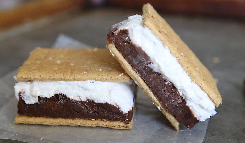 Θα γίνει το αγαπημένο των παιδιών! Υλικά 1 κουτί στιγμιαίο μίγμα σοκολατένιας πουτίγκας 2 1/2 φλιτζάνια γάλα 200 γρ. ζαχαρωτά μαρσμέλοους 110 γρ. κρέμα τυριού 220 γρ. σαντιγί, αποψυγμένη 16 κράκερς Γκράχαμ ολικής άλεσης Εκτέλεση Στρώστε σε ένα ταψί αλουμινόχαρτο επιτρέποντας στο αλουμινόχαρτο να βγαίνει και έξω από το ταψί. Ανακατέψτε την πουτίγκα με το γάλα και ρίξτε το μίγμα ομοιόμορφα στο ταψί. Ανακατέψτε την κρέμα τυριού και τα ζαχαρωτά μέχρι να γίνουν ένα. Προσθέστε και τη σαντιγί και απλώστε το μίγμα πάνω από την πουτίγκα. Σκεπάστε με αλουμινόχαρτο και αφήστε το στο ψυγείο για 4 ώρες, μέχρι να παγώσει. Χρησιμοποιώντας το αλουμινόχαρτο βγάλτε την πουτίγκα και τα μαρσμέλοους από το ταψί. Κόψτε το σε κομμάτια στο μέγεθος των κράκερς και δημιουργήστε το σάντουιτς με ένα κράκερ πάνω κι ένα κάτω.