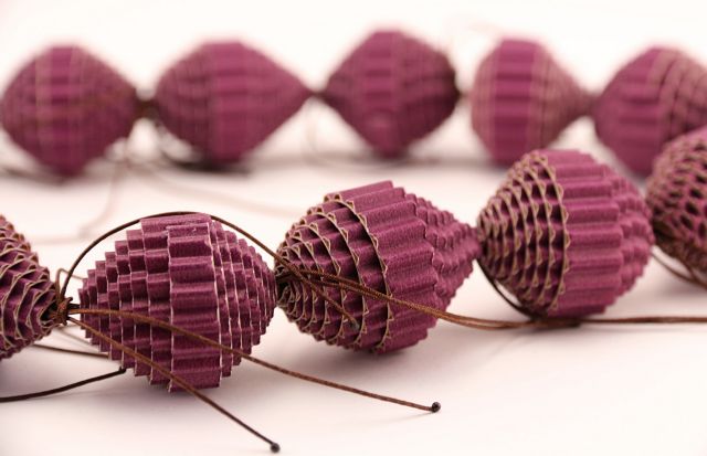 Εκτέλεση Κόψτε το εσωτερικό του πιάτου. Διακοσμήστε αυτό που έμεινε, με μαρκαδόρους. Ανοίξτε 2 τρύπες και περάστε τα κορδόνια. Αλλιώς κόψτε τα χάρτινα πιάτα σε τρίγωνα ή σε όποιο σχήμα θέλετε και φτιάξτε ένα μακρύ κόσμημα.