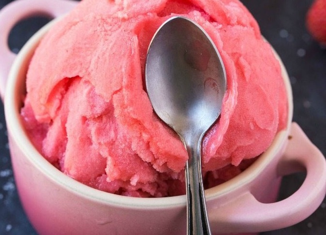 Παγωτό με γεύση φράουλα χωρίς γάλα και με λίγες θερμίδες! Υλικά 2 φλιτζάνια παγωμένες φράουλες 1 κονσέρβα γάλα καρύδας, παγωμένο Μισό φλιτζάνι σιρόπι σφενδάμου Εκτέλεση 1. Τοποθετήστε ένα σκεύος για κέικ στο ψυγείο. 2. Λιώστε τα υλικά στο μπλέντερ μέχρι να γίνει το μίγμα κρεμώδες. 3. Ρίξτε το μίγμα στο σκεύος και ανακατέψτε το 1-2 φορές την πρώτη ώρα που το έχετε στο ψυγείο. 4. Ξεπαγώστε για 10 λεπτά προτού σερβίρετε το παγωτό. Καλή απόλαυση!
