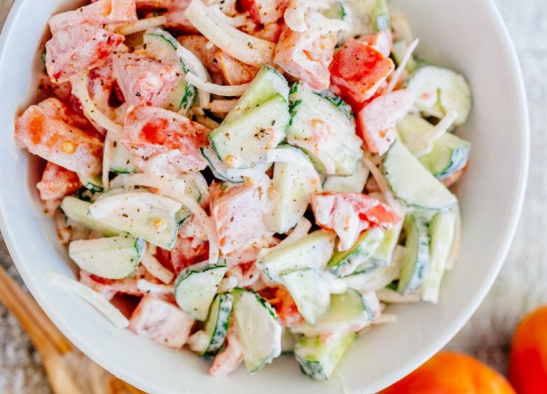 Κρεμώδης σαλάτα με αγγούρι και ντομάτα
