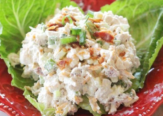 Υλικά 120 γραμ. στήθος κοτόπουλο 3 στικς από σέλερι ψιλοκομμένα 1/3 φλιτζανιού μαγιονέζα ¼ φλιτζανιού γιαούρτι 1 κουταλιά της σούπας μουστάρδα 1 κουταλιά της σούπας χυμό λεμόνι 1 κουταλιά της σούπας ψιλοκομμένο μαϊντανό 1 κουταλιά της σούπας μικρούς βολβούς από λαχανικά (προαιρετικά) Εκτέλεση Γεμίστε μία μεσαία κατσαρόλα με νερό μέχρι τη μέση και αφήστε το να βράσει. Προσθέστε 1 κουταλάκι του γλυκού αλάτι και το κοτόπουλο. Χαμηλώστε τη φωτιά και αφήστε το να σιγοβράσει, 10 με 12 λεπτά. Αν δεν έχετε χρόνο, αγοράστε έτοιμο ψητό στήθος κοτόπουλου. Όταν κρυώσει, κόψτε το σε μικρά κομμάτια με τη βοήθεια δύο πιρουνιών. Σε ένα μεγάλο μπολ, ανακατέψτε τη μαγιονέζα, το γιαούρτι, τη μουστάρδα, το χυμό λεμονιού, μισό κουταλάκι του γλυκού αλάτι και ¼ κουταλάκι του γλυκού πιπέρι. Προσθέστε το κοτόπουλο και ανακατέψτε το όλο μαζί. Ψιλοκόψτε το σέλερι και προσθέστε το στο μείγμα με το μαϊντανό και τους βολβούς. Τα υπόλοιπα τα αφήνουμε στη φαντασία σας. Μπορείτε να προσθέσετε σταφίδες, ξηρούς καρπούς, φέτες μήλου ή αχλαδιού, βασιλικό, μέντα και ό,τι άλλο ταιριάζει στις γεύσεις σας.