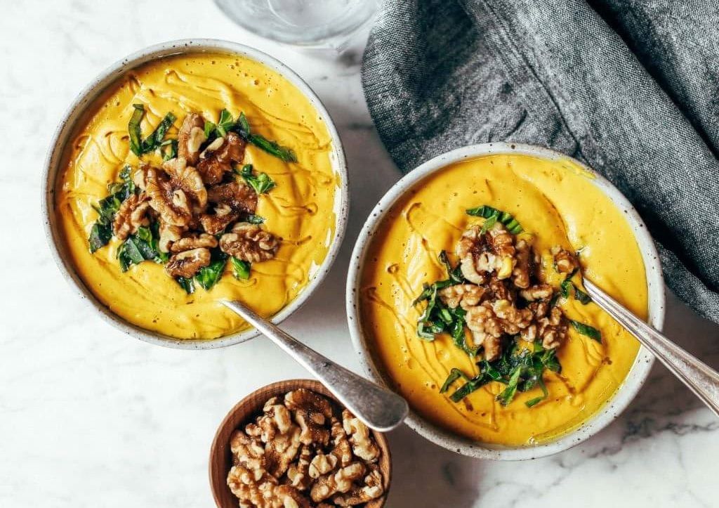Υλικά 1 μέτρια γλυκοπατάτα αποφλοιωμένη, ψιλοκομμένη 2 μεγάλα καρότα, ψιλοκομμένα 1/4 κουνουπίδι, ψιλοκομμένο 1/2 μεγάλο λευκό κρεμμύδι, ψιλοκομμένο 2 σκελίδες σκόρδο 1 φλιτζάνι κάσιους 2 κουταλιές της σούπας ελαιόλαδο 1 κουταλιά της σούπας φρέσκο τζίντζερ, τριμμένο 1 κουταλιά σούπας κουρκουμά σε σκόνη 1 κουταλιά της σούπας κόκκινο κάρι 2 κουταλάκια του γλυκού αλάτι Μοσχοκάρυδο Πιπέρι Χυμό λεμονιού από 1/2 μεγάλο λεμόνι 4 φλιτζάνια ζωμό λαχανικών Εκτέλεση Σε μια μεγάλη κατσαρόλα προσθέστε ελαιόλαδο, κάσιους και λαχανικά. Καλύψτε με ένα καπάκι και σοτάρετε μέχρι να μαλακώσουν (ανακατεύοντας μερικές φορές). Στη συνέχεια προσθέστε μπαχαρικά και νερό. Συνδυάστε τα πάντα σε ένα μπλέντερ μέχρι να λιώσουν και σερβίρετε.