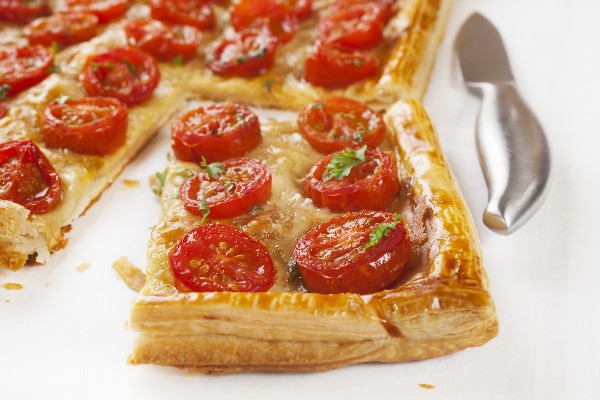 Υλικά Αλεύρι για όλες τις χρήσεις, για την επιφάνεια στην οποία θα εργαστείτε 1/2 συσκευασία ζύμη σφολιάτας 1 φλιτζάνι ντοματίνια, κομμένα στη μέση 1 φλιτζάνι μοτσαρέλα 1 κ.σ. ελαιόλαδο Αλάτι και πιπέρι Εκτέλεση Προθερμάνετε τον φούρνο στους 200 βαθμούς. Σε μία ελαφρώς αλευρωμένη επιφάνεια ξετυλίξτε τη ζύμη σε ορθογώνιο σχήμα. Τοποθετήστε τη ζύμη πάνω σε μία λαδόκολλα και αφήστε τη στο ψυγείο μέχρι να γίνει σταθερή, δηλαδή τουλάχιστον για 30′. Πατήστε τη ζύμη με ένα πιρούνι και στη συνέχεια ρίξτε τη μοτσαρέλα και τα ντοματίνια. Προσθέστε το λάδι και το αλατοπίπερο.  Ψήστε μέχρι να πάρει χρώμα η ζύμη και να μαγειρευτεί και εσωτερικά, για περίπου 20-25′. Κόψτε σε κομμάτια και σερβίρετε.