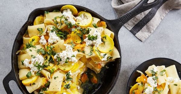 Ζυμαρικά στο τηγάνι με κολοκύθι και τυρί