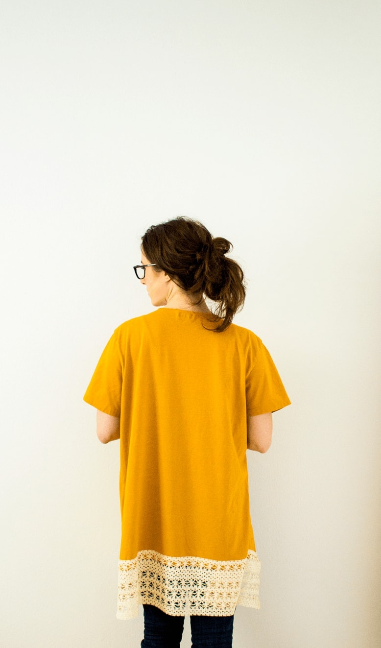 Ένας από τους καλύτερους τρόπους να αγαπήσετε το στυλ σας είναι να αγκαλιάσετε την μόδα. Είναι εύκολο και διασκεδαστικό. Είναι και μια μορφή ανακύκλωσης, σωστά; Και εννοώ σε ποιον δεν αρέσει να ξοδεύει σχεδόν τίποτα για ένα καινούργιο κιμονό; Το μοναδικό που θα χρειαστείτε είναι μια μεγάλη, μαλακή μπλούζα (μπορεί να είναι και του συντρόφου σας) και μια φάσα από δαντέλα ή κρόσσια. Εύκολα και γρήγορα με ένα ψαλίδι και λίγη κλωστή. Διαλέξτε ένα μπλουζάκι, ιδανικά σε ζωηρό χρώμα.
