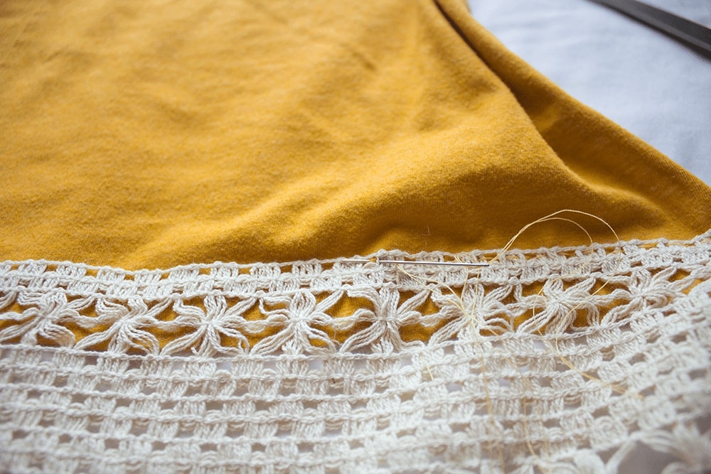 Στη ραφή της μπλούζας τοποθετήστε την δαντέλα ή οποιαδήποτε φάσα προτιμάτε.