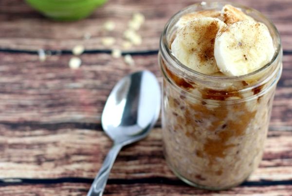Ο καλύτερος τρόπος να ξεκινήσετε την ημέρα σας! Προετοιμάστε τη συνταγή από το βράδυ και φυλάξτε το βάζο στο ψυγείο για τουλάχιστον 6 ώρες. Μην ξεχάσετε να τοποθετήσετε το καπάκι του βάζου. Υλικά 1/2 φλ. νιφάδες βρώμης 1/4 κ.γ. κανέλα 1/2 φλ. γάλα (π.χ. αμυγδάλου) 1 κ.γ. σιρόπι σφενδάμου 2 κ.σ. φιστικοβούτυρο 1/2 μπανάνα σε κομμάτια (προσθέστε τη προτού σερβίρετε) Εκτέλεση Ανακατέψτε τη βρώμη και την κανέλα σε ένα βαζάκι. Προσθέστε το γάλα και το σιρόπι και ανακατέψτε καλά. Ρίξτε το φιστικοβούτυρο και ανακατέψτε ελαφρώς. Τοποθετήστε το καπάκι και φυλάξτε στο ψυγείο για τουλάχιστον 6 ώρες. Το πρωί αφαιρέστε το καπάκι και προσθέστε από πάνω τα κομμάτια μπανάνας. Αν θέλετε πασπαλίστε λίγη κανέλα.