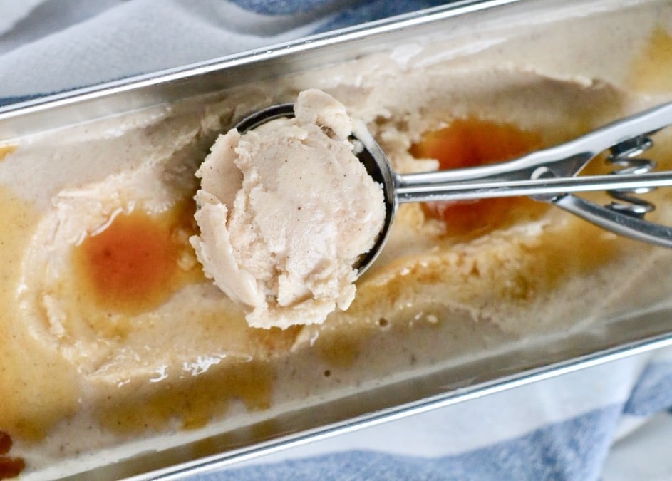 Υλικά για 4-6 μερίδες 4 μπανάνες 1 1/2 φλ. γιαούρτι παγωμένο 1 1/5 κ.γ. εκχύλισμα βανίλιας 1/2 κ.γ. κανέλα 1/3 φλ. σιρόπι σφενδάμου Εκτέλεση Κόψτε τις μπανάνες σε στρογγυλά κομμάτια και τοποθετήστε τις σε ένα τάπερ στο οποίο έχετε στρώσει λαδόκολλα. Αφήστε το τάπερ στην κατάψυξη για 4 ώρες ή για όλη τη νύχτα. Λιώστε όλα τα υλικά σε έναν επεξεργαστή τροφίμων για 3-5 λεπτά, μέχρι δηλαδή να έχετε ένα ομοιογενές μίγμα. Ρίξτε το μίγμα σε ένα μεταλλικό σκεύος και παγώστε στην κατάψυξη για 3-4 ώρες ή μέχρι να σταθεροποιηθεί. Προτού σερβίρετε αφήστε το έξω για 15 λεπτά. Καλή απόλαυση!