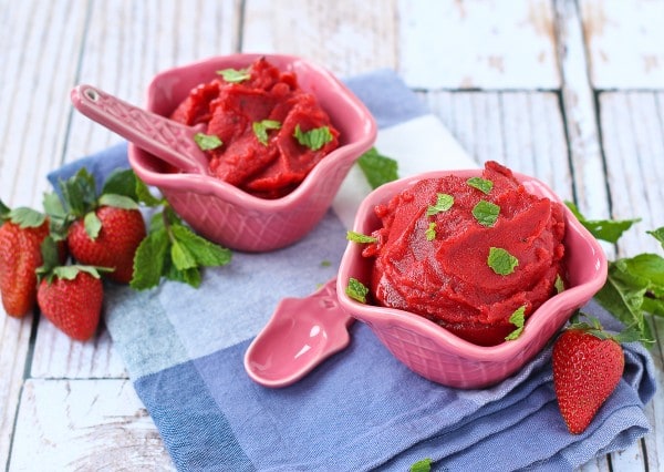 Για να απολαύσετε με την οικογένειά σας τις τελευταίες ημέρες του καλοκαιριού! Υλικά 2-3 μάνγκο 1/2 κιλό φράουλες 3/4 φλ. ζάχαρη 3/4 φλ. νερό Χυμός από 1 λεμόνι Εκτέλεση Βράστε τη ζάχαρη στο νερό έτσι ώστε να έχετε σιρόπι και αφήστε το να κρυώσει. Πλύνετε, καθαρίστε και ψιλοκόψτε τα φρούτα. Προσθέστε στα φρούτα τον χυμό λεμονιού και ανακατέψτε. Λιώστε τα φρούτα στο μπλέντερ και ρίξτε το σιρόπι. Ανακατέψτε πάλι μέχρι το μίγμα να γίνει ομοιογενές. Ρίξτε το μίγμα στην παγωτομηχανή και ακολουθήστε τις οδηγίες του κατασκευαστή. Τοποθετήστε το μίγμα σε ένα τάπερ και φυλάξτε στην κατάψυξη για τουλάχιστον 4 ώρες.