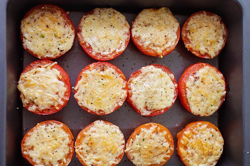 Υλικά για 4 άτομα 4 ντομάτες, μέτριες, ξεφλουδισμένες και κομμένες στη μέση και έπειτα σε χοντρές φέτες 2 κ.σ. καλαμποκάλευρο έ.π. ελαιόλαδο για το τηγάνισμα 4 κ.σ. κεφαλογραβιέρα, τριμμένη Φρεσκοτριμμένο πιπέρι Εκτέλεση Ξεφλουδίστε τις ντομάτες βουτώντας τις για μισό με ένα λεπτό (ανάλογα με το πόσο ψιλόφλουδες ή χοντρόφλουδες είναι) σε νερό που βράζει. Ξεφλουδίστε τις και αφήστε τις με την κομμένη πλευρά πάνω σε μία σχάρα να στραγγίσουν. Κόψτε τις σε χοντρούτσικες φέτες του μισού εκατοστού περίπου. Ρίξτε το καλαμποκάλευρο σ’ενα μεγάλο πιάτο ή ταψάκι. Πανάρετε τις ντομάτες στο καλαμποκάλευρο. Σε ένα τηγάνι ρίξτε το ελαιόλαδο (πρέπει να είναι περίπου σε ύψος ενός εκατοστού) και τηγανίστε τις ντομάτες 5 λεπτά από την κάθε πλευρά. Βάλτε τις για λίγο σε απορροφητικό χαρτί να στραγγίξει το λάδι. Απλώστε τις σε μια πιατέλα και πασπαλίστε κάθε ντομάτα με μία κουταλιά κεφαλογραβιέρα. Σερβίρετε τις ντομάτες ζεστές με φρεσκοτριμμένο πιπέρι.