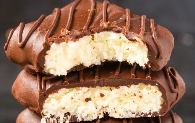 Υλικά για 12 μερίδες 395 γρ. ζαχαρούχο γάλα 3 αυγά 120 γρ. γάλα καρύδας 120 γρ. γάλα 150 γρ. ινδοκάρυδο 300 γρ. σοκολάτα κουβερτούρα λιωμένη Ινδοκάρυδο Εκτέλεση Προθερμάνετε τον φούρνο στους 180°C στον αέρα και αλευροβουτυρώστε ένα ταψάκι διαστάσεων 20×30 εκ. Σε ένα μπολ συνδυάστε το ζαχαρούχο γάλα, τα αυγά, το γάλα καρύδας και το γάλα. Με ένα σύρμα χειρός ανακατέψτε τα υλικά μέχρι να έχετε ένα ομοιογενές μίγμα. Προσθέστε το ινδοκάρυδο και ανακατέψτε με μια σπάτουλα σιλικόνης μέχρι να γίνει ένα με τα υπόλοιπα υλικά. Αδειάστε το μίγμα στο ταψί και ψήσε για 35 λεπτά μέχρι να πάρει χρώμα το κέικ και να βγαίνει καθαρό ένα μαχαίρι από το κέντρο του. Αφαιρέστε από τον φούρνο και αφήστε για 30 λεπτά να κρυώσει εντελώς. Παράλληλα λιώστε τη σοκολάτα κουβερτούρα σε ένα μπεν μαρί. Κόψτε το κέικ σε 12 κομμάτια. Βουτήξτε το κάθε κομμάτι μέσα στη λιωμένη σοκολάτα και αφήστε σε μια σχάρα να στραγγίξει και να σφίξει η σοκολάτα. Συνεχίστε την ίδια διαδικασία για όλα τα κομμάτια. Πασπαλίστε το ινδοκάρυδο και με ένα κουταλάκι διακοσμήστε τα κεκάκια με την υπόλοιπη λιωμένη σοκολάτα που περίσσεψε στο μπολ.