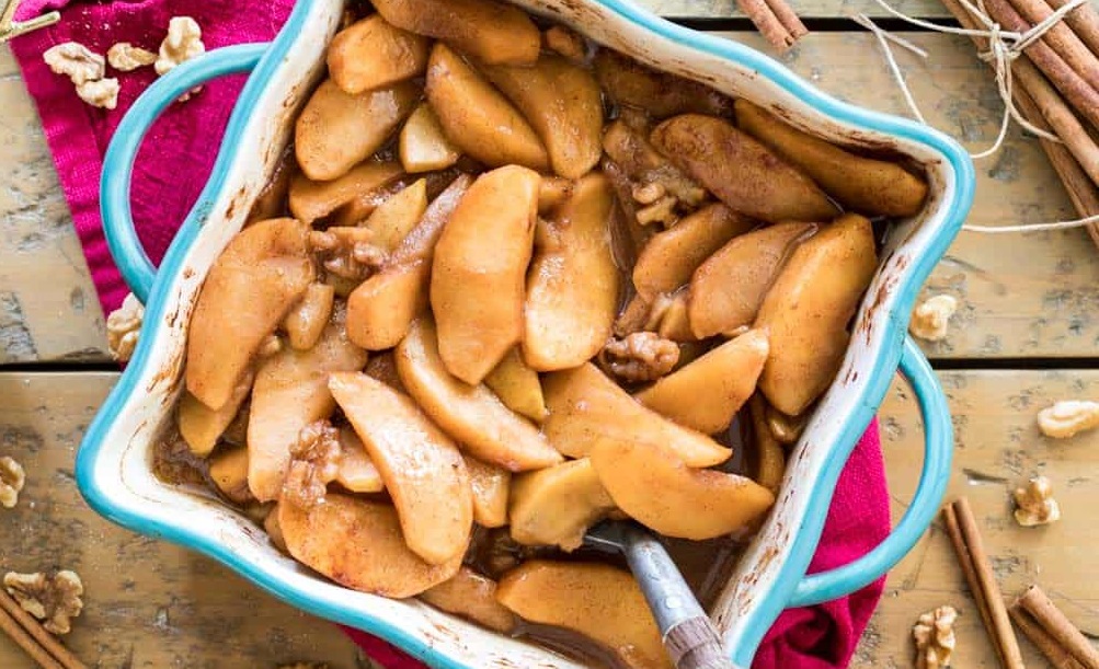 Το πιο υγιεινό σνακ του φθινοπώρου! Υλικά 2 μήλα ξεφλουδισμένα και κομμένα 2 κ.σ. βούτυρο 1/4 φλ. ζάχαρη 1 κ.γ. κανέλα Λίγο μοσχοκάρυδο 1 κ.σ. αλεύρι Εκτέλεση Ζεστάνετε ένα αντικολλητικό τηγάνι σε μεσαία φωτιά και ρίξτε το βούτυρο. Μόλις λιώσει, ρίξτε γρήγορα τα μήλα και ανακατέψτε τα με το βούτυρο. Αφήστε τα να τηγανιστούν για 3-5 λεπτά ή μέχρι να ξεκινήσουν να εμφανίζουν σκούρα σημάδια και να μαλακώνουν. Απομακρύνετε το σκεύος από τη φωτιά και προσθέστε τη ζάχαρη, την κανέλα, το μοσχοκάρυδο και το αλεύρι. Τα μήλα θα γίνονται καραμελωμένα όσο περνάει η ώρα. Αν όχι, βάλτε τα σε χαμηλή φωτιά και ανακατέψτε μέχρι να καραμελώσουν.