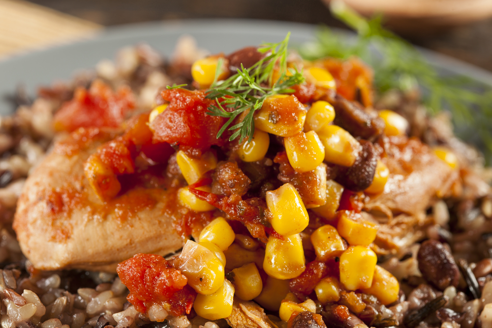 Κοκκινιστό κοτόπουλο με καλαμπόκι