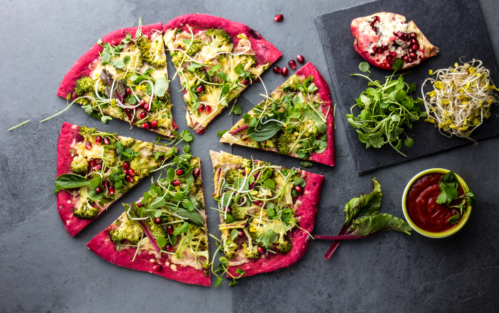 Σε ένα μεγάλο αντικολλητικό τηγάνι, βάλτε ελάχιστο λάδι σε μεσαία φωτιά., Βάλτε το μείγμα χωρίς να το ανακατεύετε μέχρι να ξεκολλήσουν οι άκρες για 5 λεπτά περίπου. Προσθέστε από πάνω τα υλικά που κρατήσατε και μεταφέρετέ το στο φούρνο για περίπου 15 λεπτά. Μία λαχταριστή αλλά υγιεινή πίτσα.