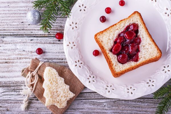 Απλώστε στο τοστ το τυρί που θέλετε και με μισό κουταλάκι του γλυκού μαρμελάδα κράνμπερι.