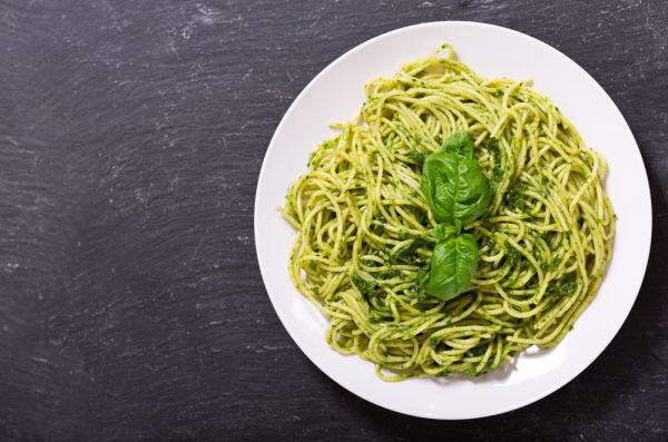 4. Σερβίρετε τα μακαρόνια ζεστά, προσθέτοντας από πάνω κουταλιές από τη σάλτσα al pesto που φτιάξατε.