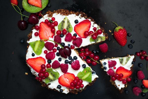 - Απλώστε το στις αραβικές πίτες ή τορτίγιες και γαρνίρετε με τα φρούτα και τα καρύδια.