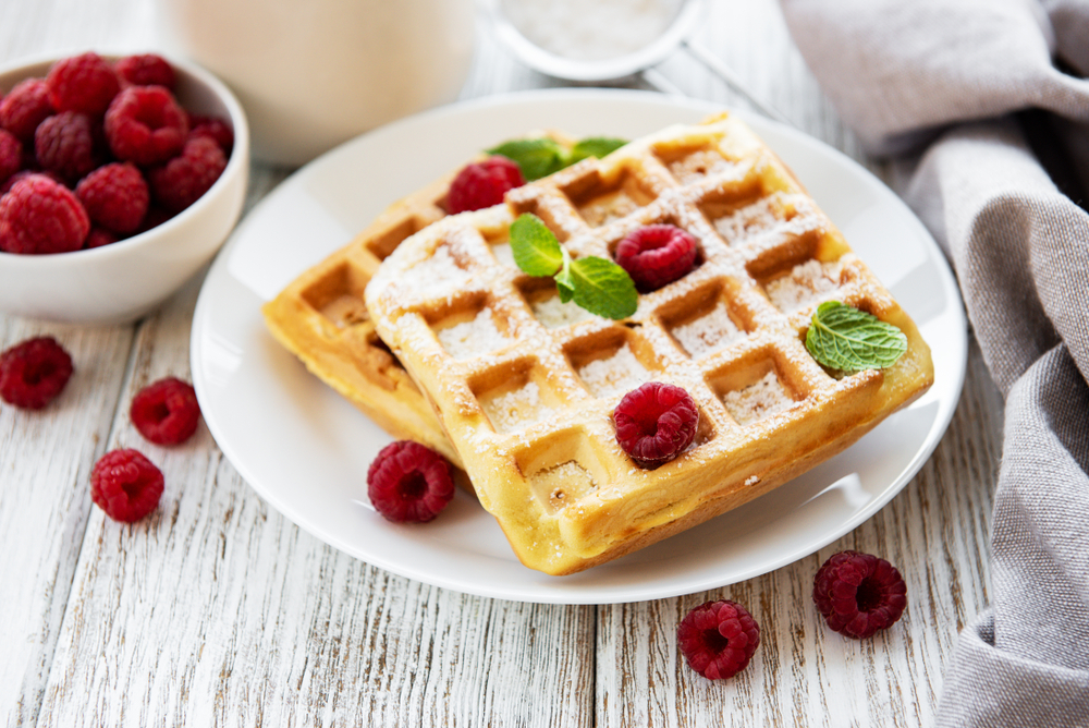 Σερβίρετε αμέσως με σιρόπι, μαρμελάδα, φρέσκα φρούτα, γλυκιά σαντιγί ή πραλίνα ή διατηρήστε τις βάφλες ζεστές στο φούρνο μέχρι το σερβίρισμα.