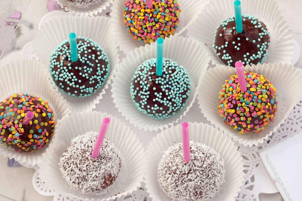 - Φτιάξτε τη βουτυρόκρεμα. Σε ένα μεγάλο μπολ με μίξερ, χτυπήστε το βούτυρο με την άχνη και προσθέστε τη βανίλια και το γάλα. Όταν κρυώσει το κέικ, κόψτε σε μεγάλα κομμάτια και ανακατέψτε με τη βουτυρόκρεμα. Φτιάξτε μπαλάκια, περάστε από ένα πλαστικό καλαμάκι στη βάση και βάλτε τα στο ψυγείο για 1 ώρα.