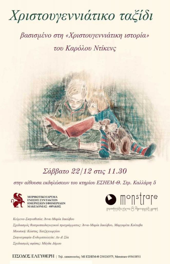 Το Μορφωτικό Ίδρυμα της ΕΣΗΕΜ-Θ καλεί όλα τα παιδιά και την παρέα τους το Σάββατο 22 Δεκεμβρίου 2018 (στις 11.30) στην θεατρική παράσταση Χριστουγεννιάτικο Ταξίδι, βασισμένη στη Χριστουγεννιάτικη Ιστορία του Κάρολου Ντίκενς.