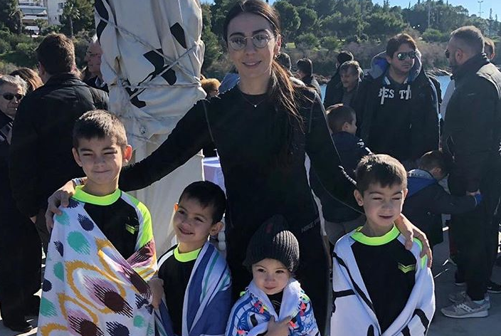 Η Ολυμπία Χοψονίδου τήρησε την παράδοση των Θεοφανείων και δε δίστασε να βουτήξει στα παγωμένα νερά με τους τρεις γιους της για να πιάσουν τον Σταυρό. Φυσικά, η ίδια και τα παιδιά φορούσαν ολόσωμη φόρμα για να προφυλαχτούν από τη χαμηλή θερμοκρασία.