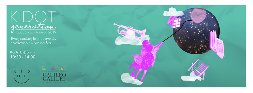 Η ομάδα KIDOT και το ινστιτούτο ξένων γλωσσών Galileo Galilei Generation ενώνουν τις δυνάμεις τους και είναι έτοιμοι να υποδεχτούν τα παιδιά του αύριο με μια σειρά από βιωματικά εργαστήρια, υπό τον τίτλο KIDOT Generation. Ξεκινώντας από τον Ιανουάριο του 2019, κάθε Σάββατο από τις 10:30 μέχρι τις 14:00 η μάθηση γίνεται παιχνίδι στον ειδικά διαμορφωμένο πολυχώρο του Galileo Galilei Generation που θα ταξιδέψει τα παιδιά σε ένα πολυθεματικό ταξίδι! Από το Σάββατο 19 Ιανουαρίου και κάθε Σάββατο θα είναι αφιερωμένο σε δύο θεματικές, όπως τέχνες, ρομποτική, επιστήμες, μουσική, χορός, θέατρο κ.ά. προσκαλώντας τα παιδιά να ανακαλύψουν ένα συνδυασμό θεματικών μέσα από δημιουργικά βιωματικά αυτοτελή εργαστήρια. Οι ομάδες που θα διεξάγουν τα εργαστήρια είναι το καταρτισμένο προσωπικό από το Galileo Galilei Generation, αλλά και επαγγελματίες έμπειροι στο παιδικό κοινό, οι οποίοι αποτελούν επιλεγμένοι συνεργάτες της ομάδας KIDOT. Το πρόγραμμα του κάθε Σαββάτου θα έχει ως εξής: - 10:30 – 11:30 Προσέλευση & προβολή ξενόγλωσσης παιδικής ταινίας με ελληνικούς υπότιτλους
