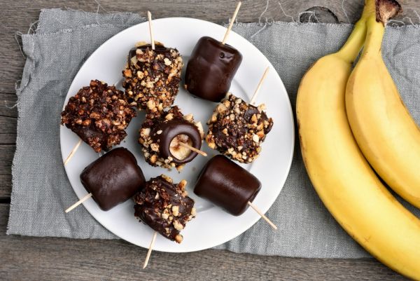 -Μπορείτε να πασπαλίσετε με θρυμματισμένα καρύδια τις μπανάνες προτού τις βάλετε στην κατάψυξη. Ωστόσο, όχι όλες τις μερίδες, αφού συνήθως τα παιδιά δεν αγαπούν τέτοιες προσθήκες.