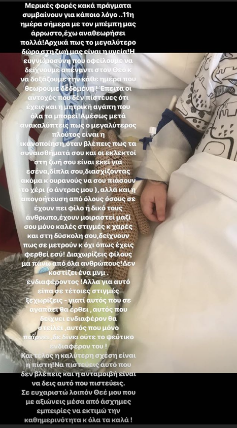 «Μερικές φορές κακά πράγματα συμβαίνουν για κάποιον λόγο… 11η μέρα σήμερα με τον μπέμπη μας άρρωστο, έχω αναθεωρήσει πολλά!