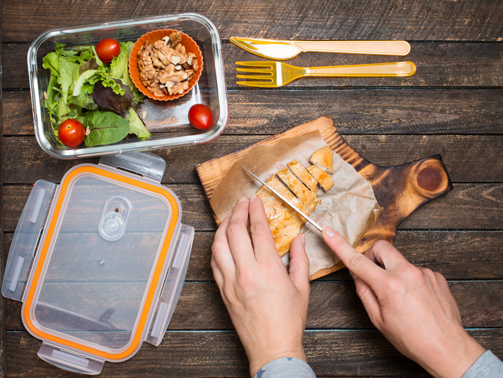 Βάλτε στο πακέτο για το σχολείο το μαρούλι, το καλαμπόκι, τα τοματίνια και το κοτόπουλο. Ανακατέψτε το αβοκάντο με το λάιμ από πάνω και πακετάρετε ξεχωριστά τη σος.