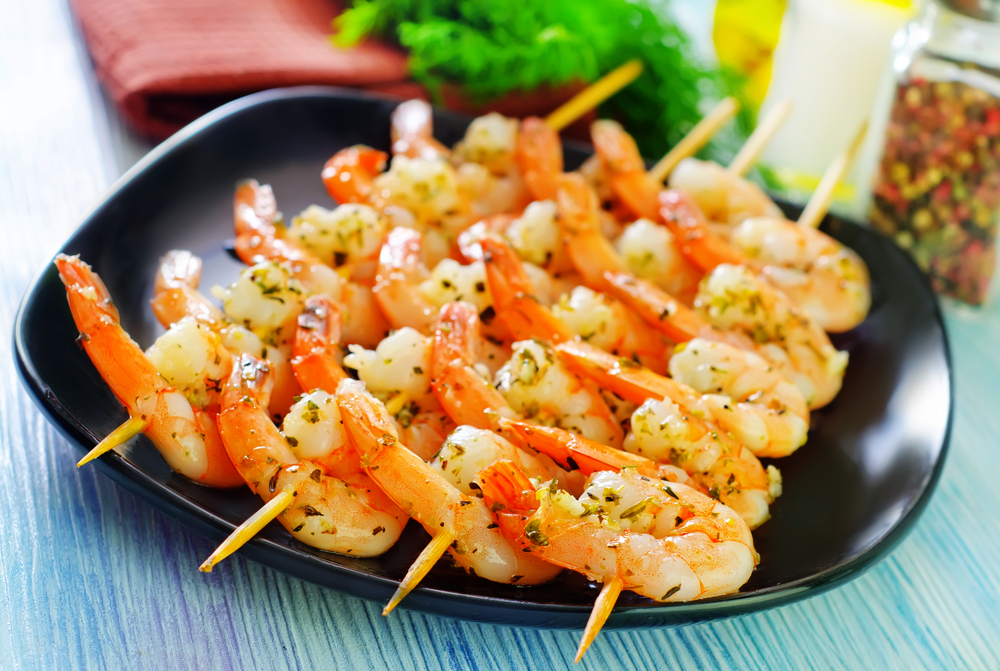 Ψιλοκόβετε το μαϊντανό. Kαθαρίζετε τις γαρίδες και τις βάζετε μαζί με το μαϊντανό, το λάδι, το λεμόνι και το πιπέρι σε ένα σκεύος μέσα στο ψυγείο για 3-4 ώρες. Kόβετε τις ντομάτες, τα κολοκυθάκια και τις πιπεριές σε κύβους. Mόλις μαριναριστούν οι γαρίδες, τις περνάτε σε ξυλάκι για σουβλάκια (εναλλάξ με τα λαχανικά). Ψήνετε τα σουβλάκια στο γκριλ ή στα κάρβουνα.