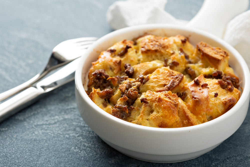Σε ένα μπολ ανακατέψτε τα αυγά, το γάλα και το πιπέρι και ρίξτε το μείγμα στο ταψί. Προσθέστε 1 1/2 φλιτζάνι τυρί και ανακατέψτε έτσι ώστε να συνδυαστούν όλα.