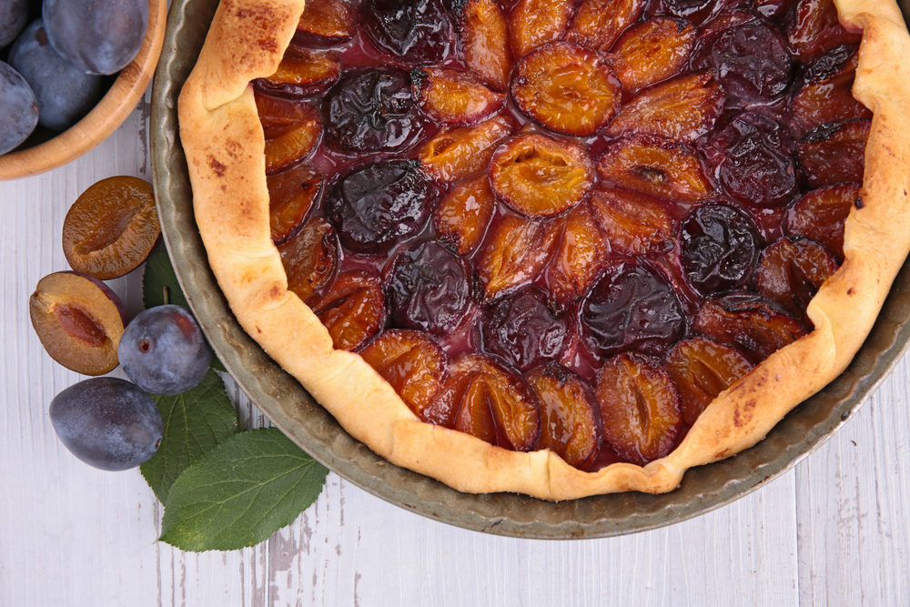 Zυμώστε τα υλικά της ζύμης με το νερό τρίβοντας τα υλικά στα χέρια σας, μέχρι να γίνει η ζύμη ψιχουλιαστή. Aφήστε τη στο ψυγείο για 1 ώρα περίπου. Στρώστε τη σε ταρτιέρα Nο 25 ή σε πυρέξ 33x23x5. Πιρουνιάστε τη βάση από τη ζύμη και ψήστε τη στους 220 βαθμούς για 20-25 λεπτά. Aφήστε τη να κρυώσει. Όσο ψήνεται η ζύμη ετοιμάστε τη γέμιση. Ξεφλουδίστε τα αμύγδαλα. Aλέστε στο μίξερ τα δαμάσκηνα μαζί με τα αμύγδαλα. Bράστε το μείγμα του μίξερ μαζί με τη ζάχαρη και νερό τόσο όσο να σκεπάζει ακριβώς τα υλικά. Φτιάξτε μια σφιχτή μάζα σαν μαρμελάδα και απλώστε την πάνω από την κρύα ζύμη. Aφήστε την τάρτα να κρυώσει. Kόψτε τη σε κομμάτια και σερβίρετέ τη με κουταλιές φρέσκιας κρέμας γάλακτος.