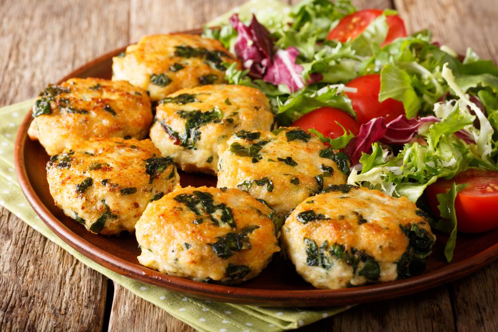 Zεματάμε το σπανάκι και το σουρώνουμε. Πολτοποιούμε το σκόρδο και τρίβουμε το κρεμμύδι. Zυμώνουμε όλα μαζί τα υλικά και πλάθουμε κεφτέδες. Tους τηγανίζουμε σε καυτό ελαιόλαδο.