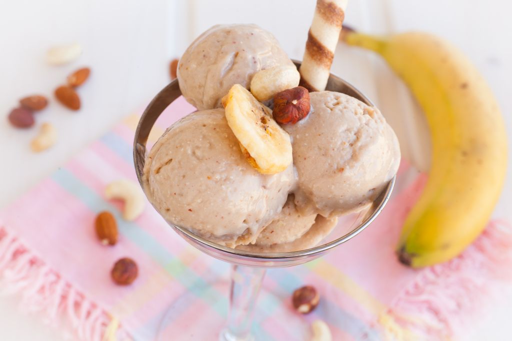 Βάλτε τις παγωμένες μπανάνες και το κακάο σε έναν επεξεργαστή τροφίμων ή σε ένα μπλέντερ υψηλής ταχύτητας και ανακατέψτε μέχρι να έχετε ένα ομοιογενές μείγμα. (Μπορεί να χρειαστεί αρκετή ώρα, μην το βάλετε κάτω!)